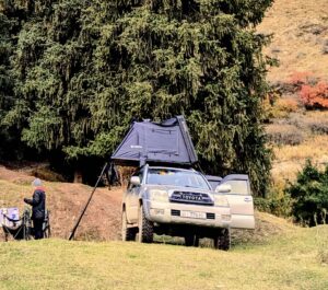 Nouveauté 2026 : en plus des kits de camping, Aydow propose des SUV équipés de tentes de toit pour bivouaquer facilement en road trip.